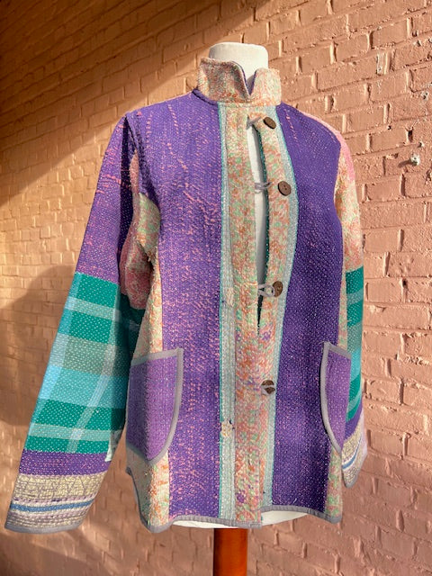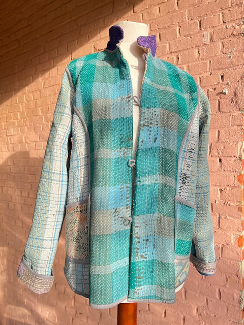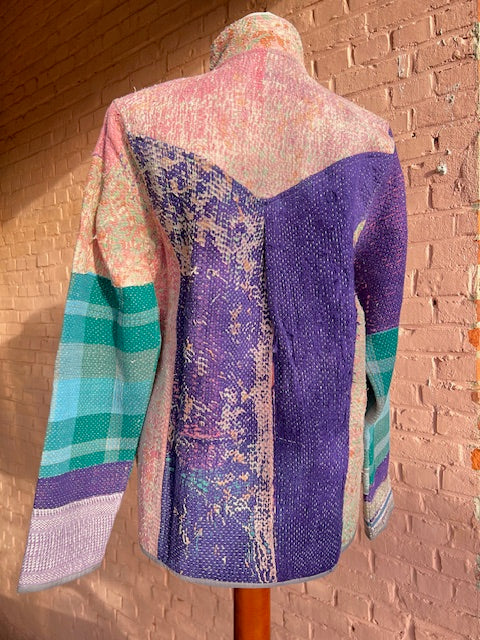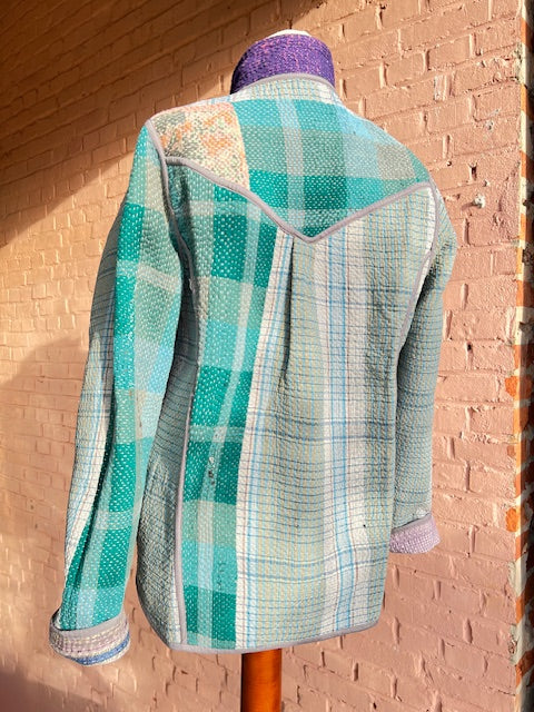 Elk Kantha vest vertelt een verhaal. Gemaakt van handgestikte, antieke (50-100 jaar oud) katoenen quilts en met zorg opnieuw samengesteld. Geen twee vesten zijn hetzelfde.