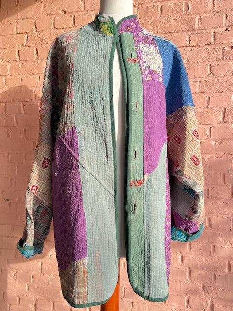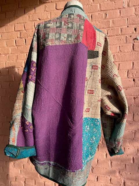 Elk Kantha vest vertelt een verhaal. Gemaakt van handgestikte, antieke (50-100 jaar oud) katoenen quilts en met zorg opnieuw samengesteld. Geen twee vesten zijn hetzelfde.