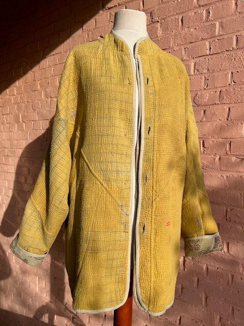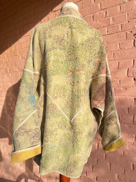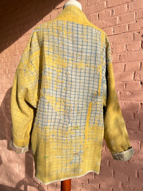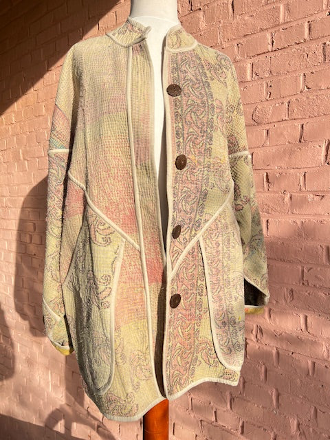 Elk Kantha vest vertelt een verhaal. Gemaakt van handgestikte, antieke (50-100 jaar oud) katoenen quilts en met zorg opnieuw samengesteld. Geen twee vesten zijn hetzelfde.