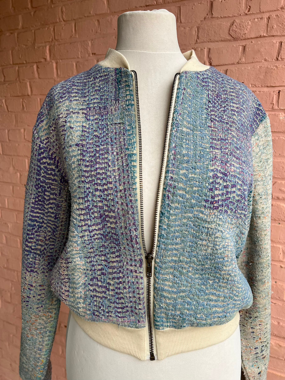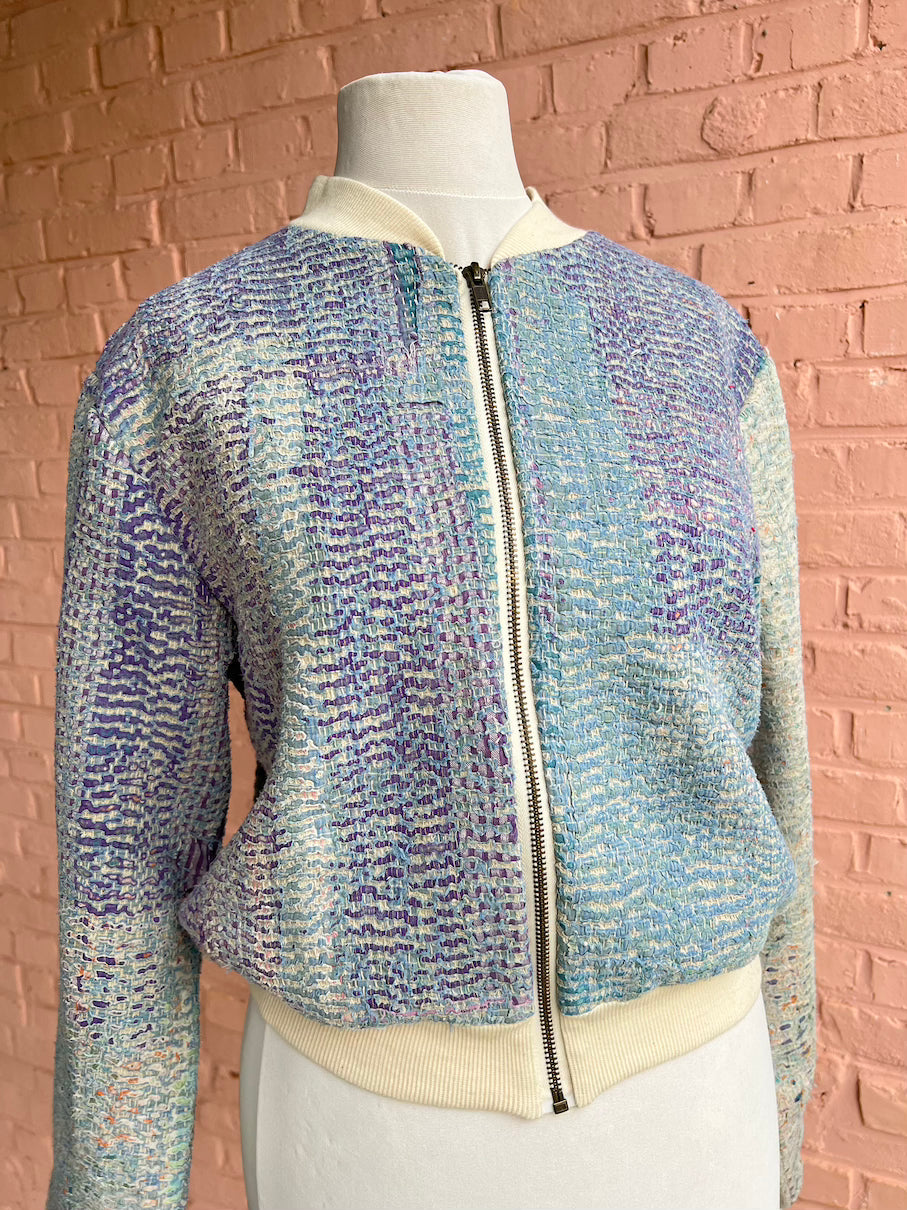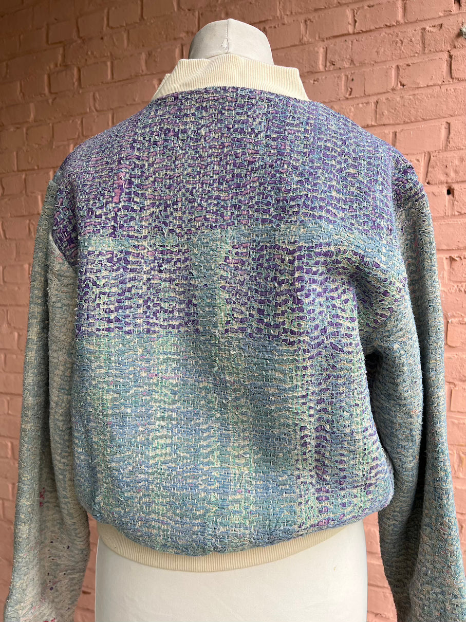 One of a kind bomber jacket made from 'Kantha' fabrics that are over 100 years old.