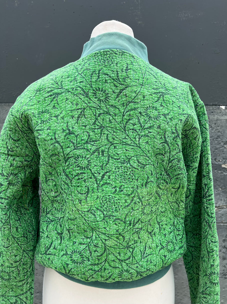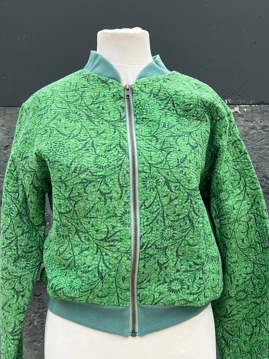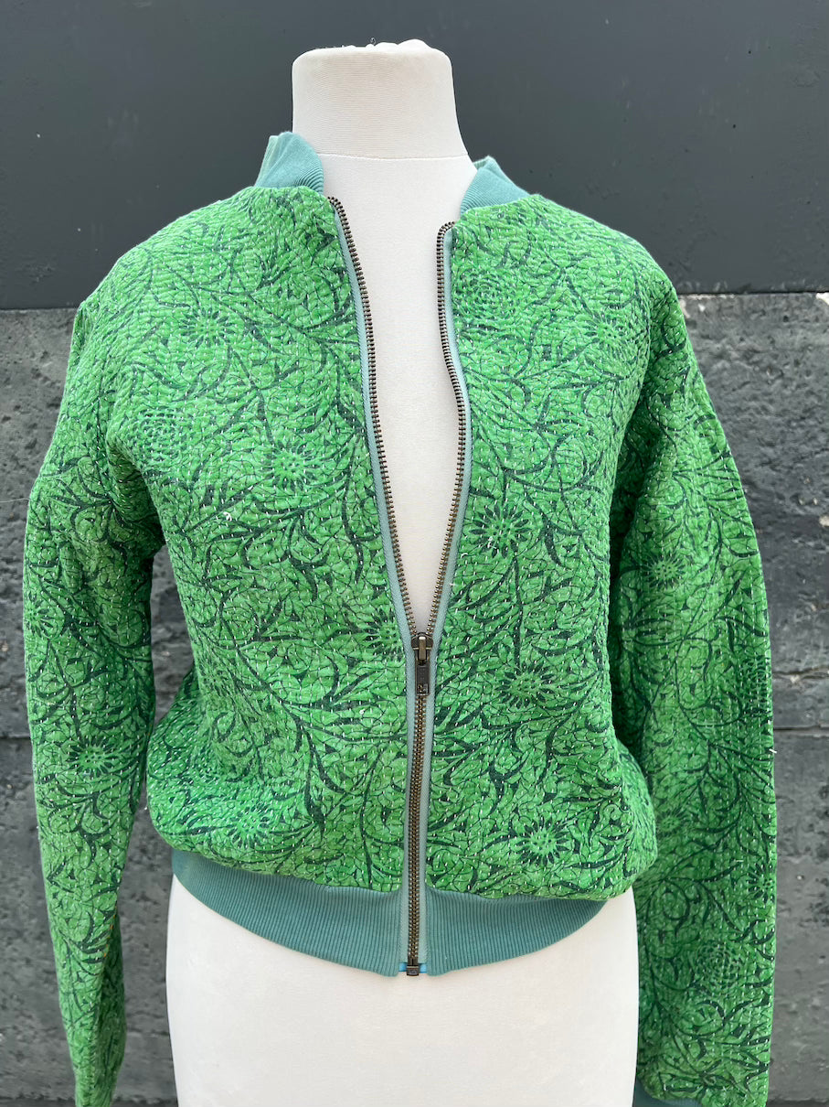 One of a kind bomber jacket made from 'Kantha' fabrics that are over 100 years old.