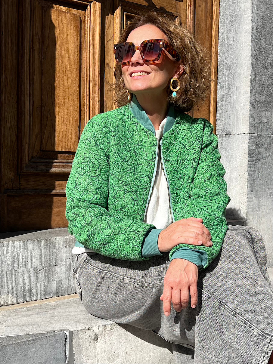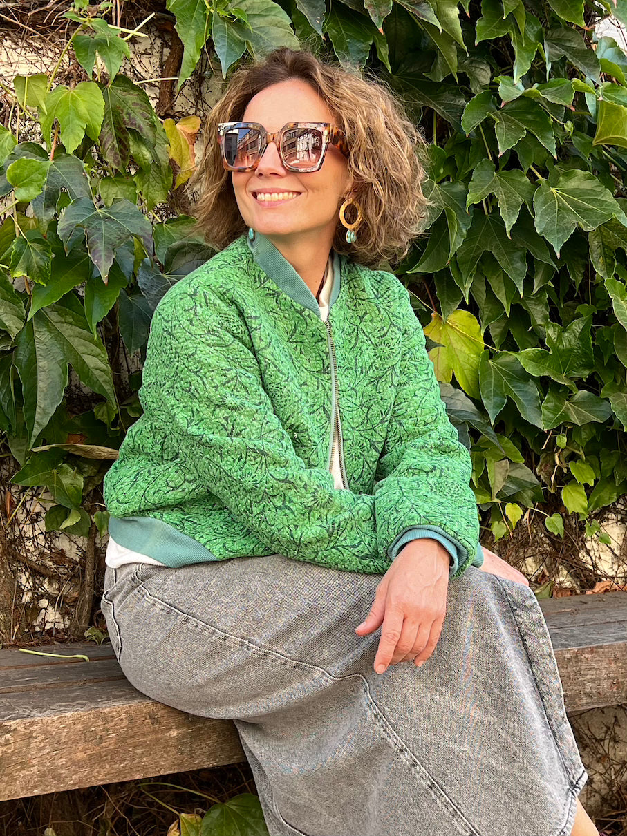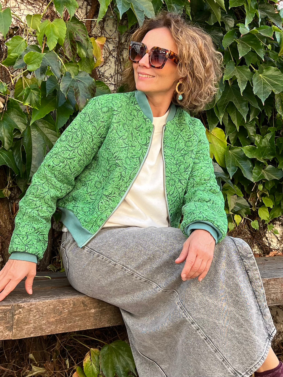 One of a kind bomber jacket made from 'Kantha' fabrics that are over 100 years old.