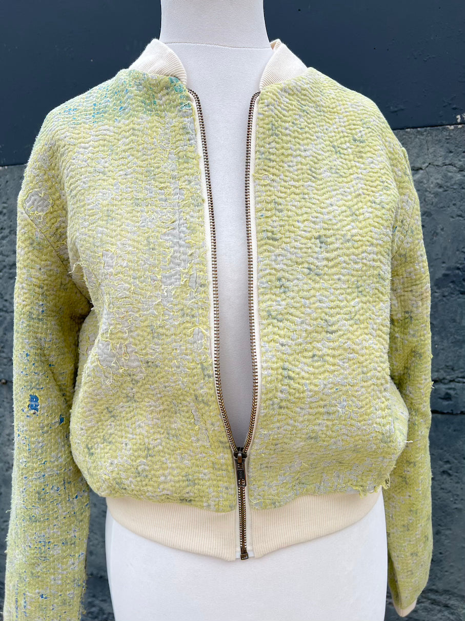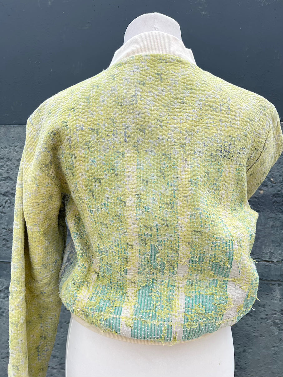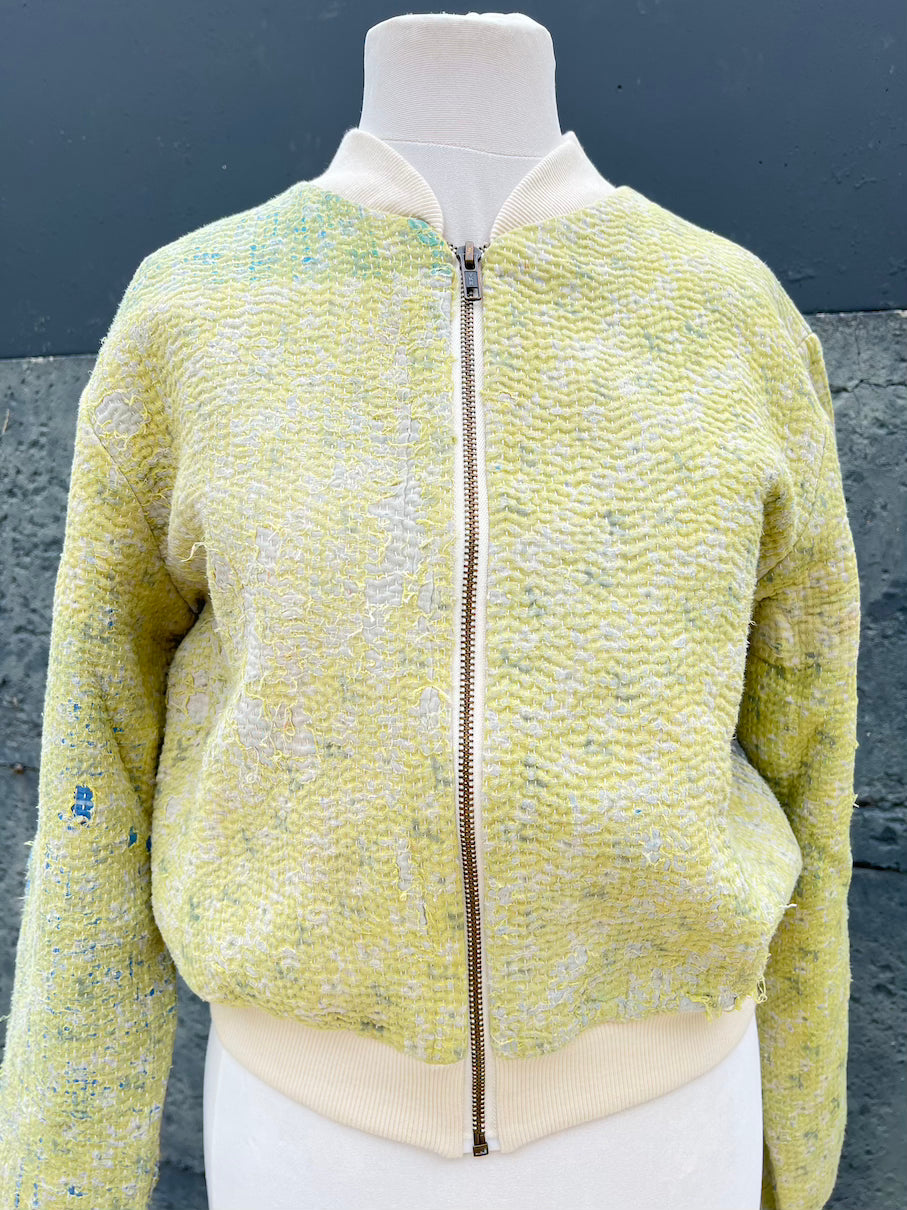One of a kind bomber jacket made from 'Kantha' fabrics that are over 100 years old.