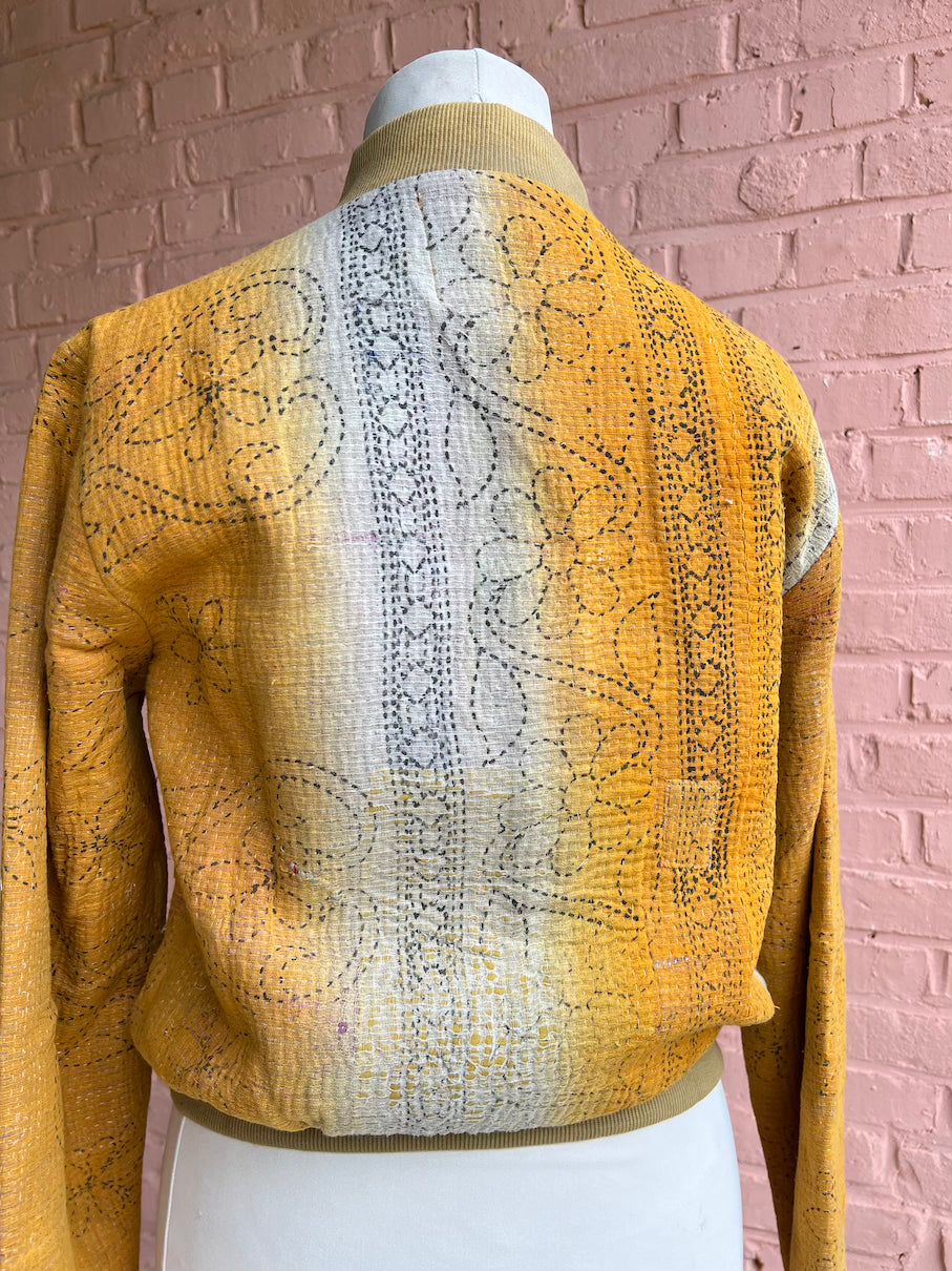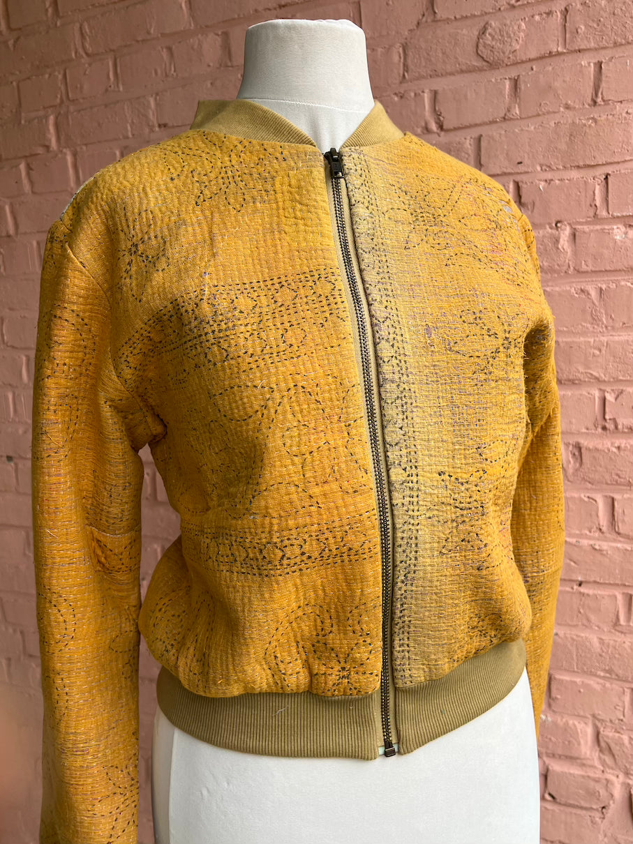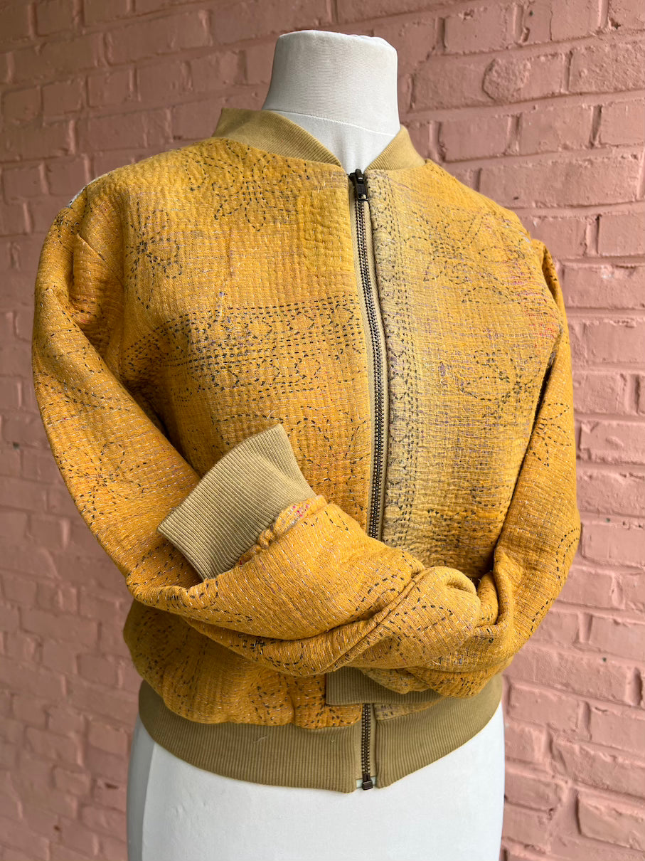 One of a kind bomber jacket made from 'Kantha' fabrics that are over 100 years old.
