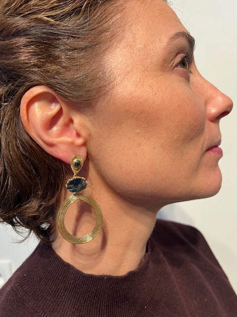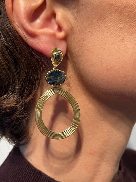 Gold-plated 92.5 Sterling Silver earring pietersite gemstone.