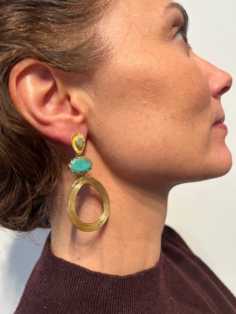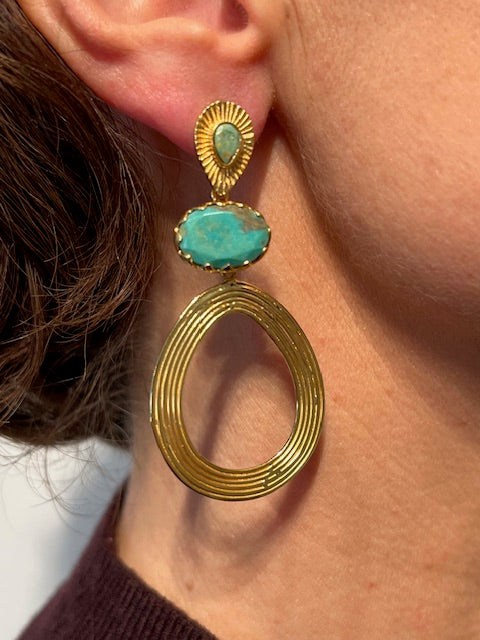 18 carat goldplated 92.5 Sterling silver earring with turquoise gemstone.