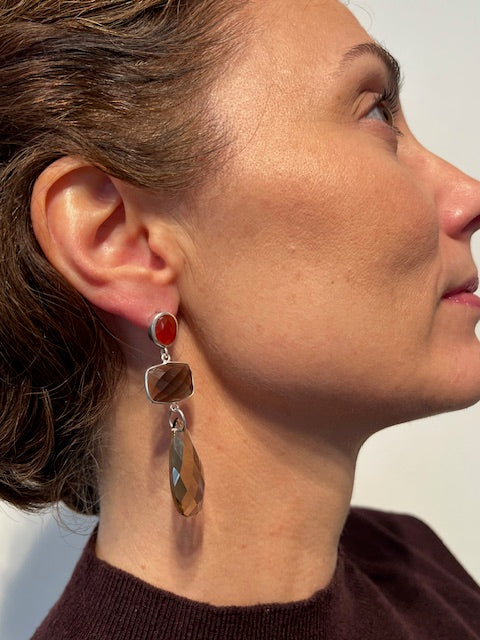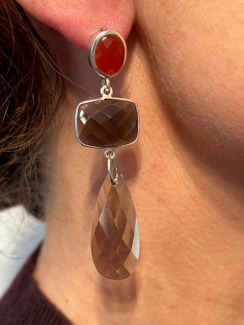 92.5 Sterling silver earring with smoky quartz and cornelian