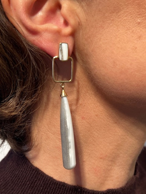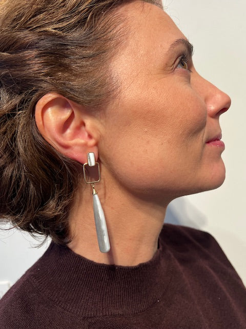 Gold-plated 92.5 Sterling silver earring with blue opal gemstone.